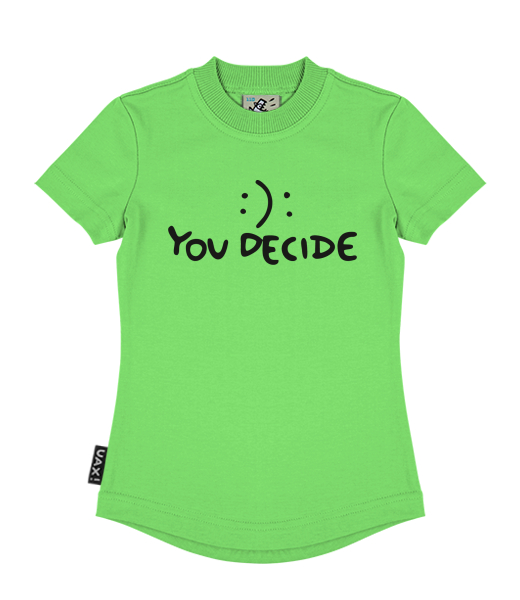 Vyrábíme udržitelné oblečení UAX! - ručně šité v Česku uaxDěti uaxVšechny produktyTričkaDÍVČÍ TRIČKOpotisk 1078 - YOU DECIDEAPPLE