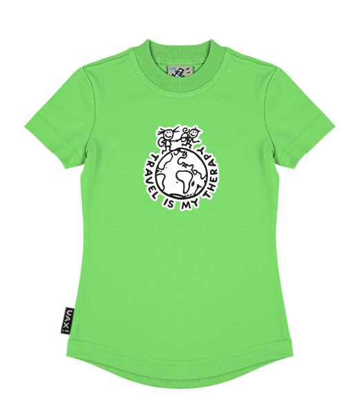 DÍVČÍ TRIČKO pro děti s potiskem 1240 TRAVEL IS MY THERAPY v barvě APPLE