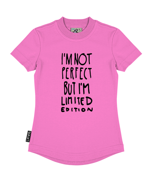 Vyrábíme udržitelné oblečení UAX! - ručně šité v Česku uaxDěti uaxVšechny produktyTričkaDÍVČÍ TRIČKOpotisk 1289 - IM NOT PERFECTCLASSIC PINK