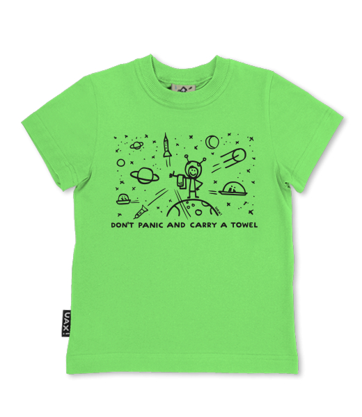 Dětské trička - SKRATCHILD pro děti s potiskem 1156 DON'T PANIC GALAXY v barvě APPLE