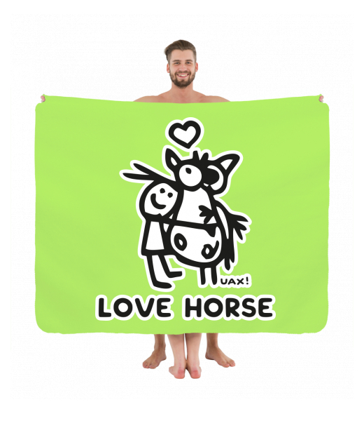Vyrábíme udržitelné oblečení UAX! - ručně šité v Česku uaxDoplňky uaxDomácí design a doplňkyRučníky a osuškyPIKNIK DEKA S POTISKEMpotisk 1219 - LOVE HORSEFLUO GREEN