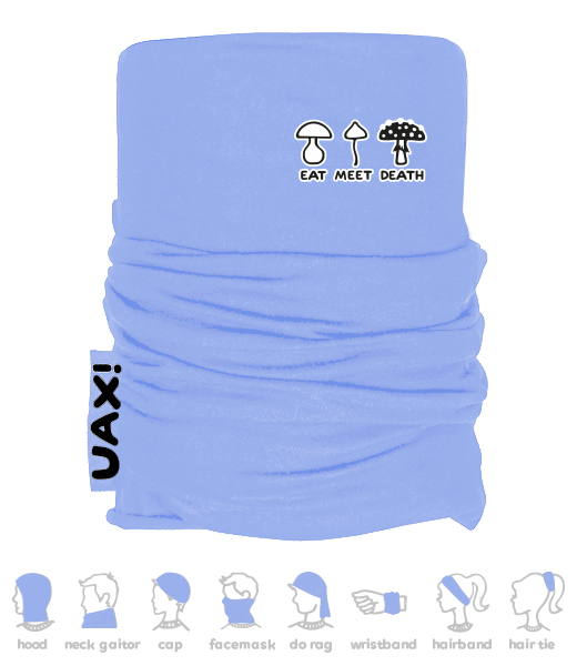 Vyrábíme udržitelné oblečení UAX! - ručně šité v Česku uaxDoplňky uaxLyžařská kolekceMultifunkční šátkyMULTIFUNKČNÍ BAVLNĚNÝ ŠÁTEKpotisk 1177 - EAT MEET DEATHVERY PERI
