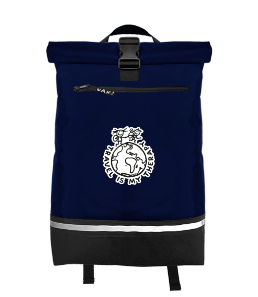 Originální batoh ROLL-TOP LARGE s potiskem 1240 TRAVEL IS MY THERAPY v barvě MIDNIGHT BLUE