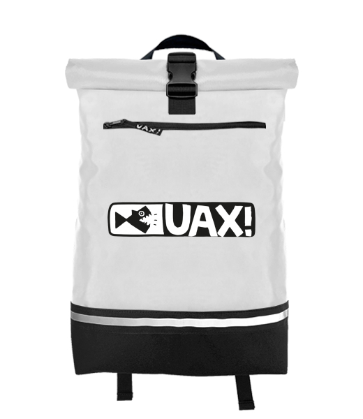 Vyrábíme udržitelné oblečení UAX! - ručně šité v Česku uaxDoplňky uaxVšechny produktyVaky a batohyBATOH ROLL-TOP LARGEpotisk 34 - LOGO03WHITE