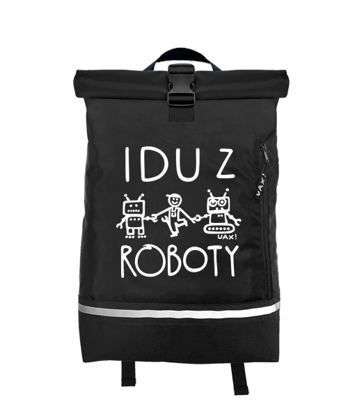 Vyrábíme udržitelné oblečení UAX! - ručně šité v Česku uaxDoplňky uaxVšechny produktyVaky a batohyBATOH ROLL-TOP SMALLpotisk 1377 - IDU Z ROBOTY 2BLACK