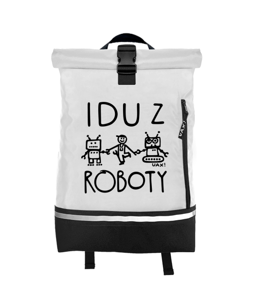Vyrábíme udržitelné oblečení UAX! - ručně šité v Česku uaxDoplňky uaxVšechny produktyVaky a batohyBATOH ROLL-TOP SMALLpotisk 1377 - IDU Z ROBOTY 2WHITE
