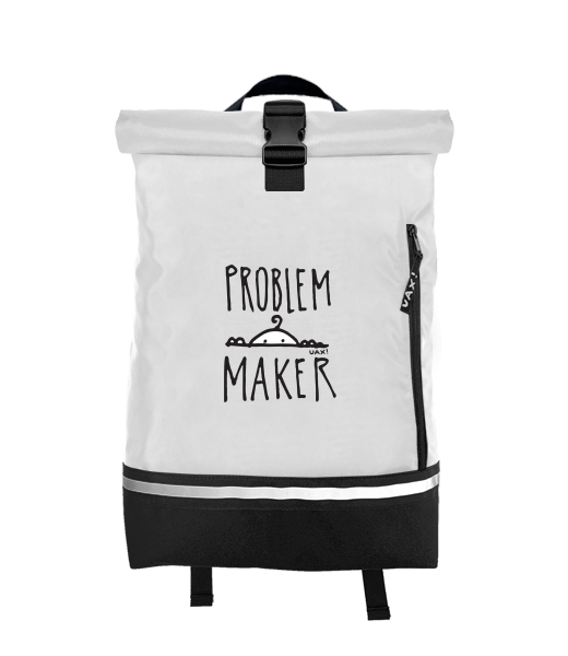 Originální batoh ROLL-TOP SMALL s potiskem 1385 PROBLEM MAKER v barvě WHITE