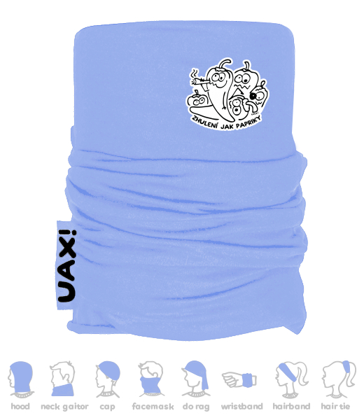Multifunkční bavlněný šátek s potiskem UAX! Vyrobeno z 100% bavlny, na přední straně možnost výběru potisku. Výběr z mnoha barev. Multifunkční bavlněné šátky jsou šity a potisknuty sítotiskem v České republice!