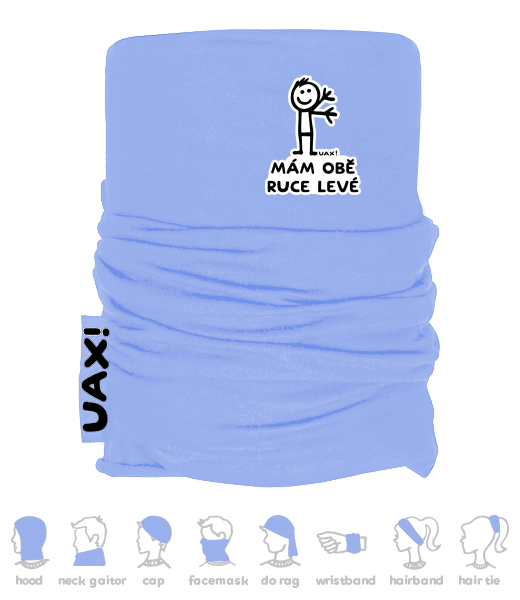 Multifunkční bavlněný šátek s potiskem UAX! Vyrobeno z 100% bavlny, na přední straně možnost výběru potisku. Výběr z mnoha barev. Multifunkční bavlněné šátky jsou šity a potisknuty sítotiskem v České republice!