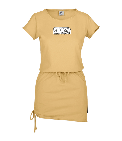 Vyrábíme udržitelné oblečení UAX! - ručně šité v Česku uaxŽeny uaxVšechny produktyŠatyDÁMSKÉ ŠATY URBANpotisk 84 - LONG WAYMUSTARD