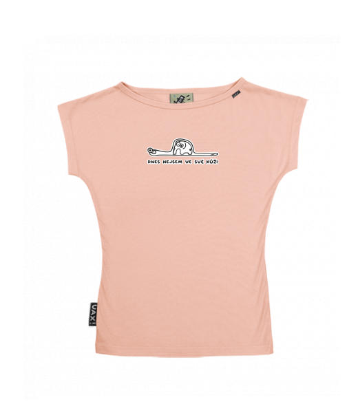 Dámské tričko s lodičkovým výstřihem pro ženy s potiskem 1187 NEJSEM VE SVÉ KŮŽI v barvě PEACH