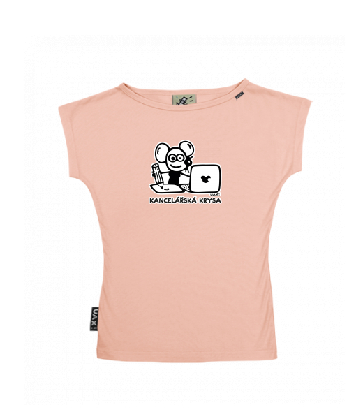 Dámské tričko s lodičkovým výstřihem pro ženy s potiskem 1191 KANCELÁŘSKÁ KRYSA v barvě PEACH