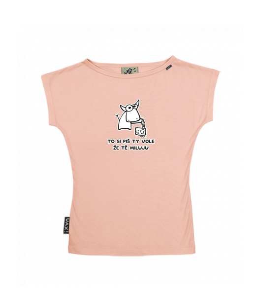 Dámské tričko s lodičkovým výstřihem pro ženy s potiskem 1192 TO SI PIŠ TY VOLE ŽE TĚ MILUJU v barvě PEACH