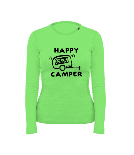 Trička s potiskem SKRATDA+ - dámské tričko s výběrem potisků pro ženy s potiskem 1116 HAPPY CAMPER v barvě APPLE