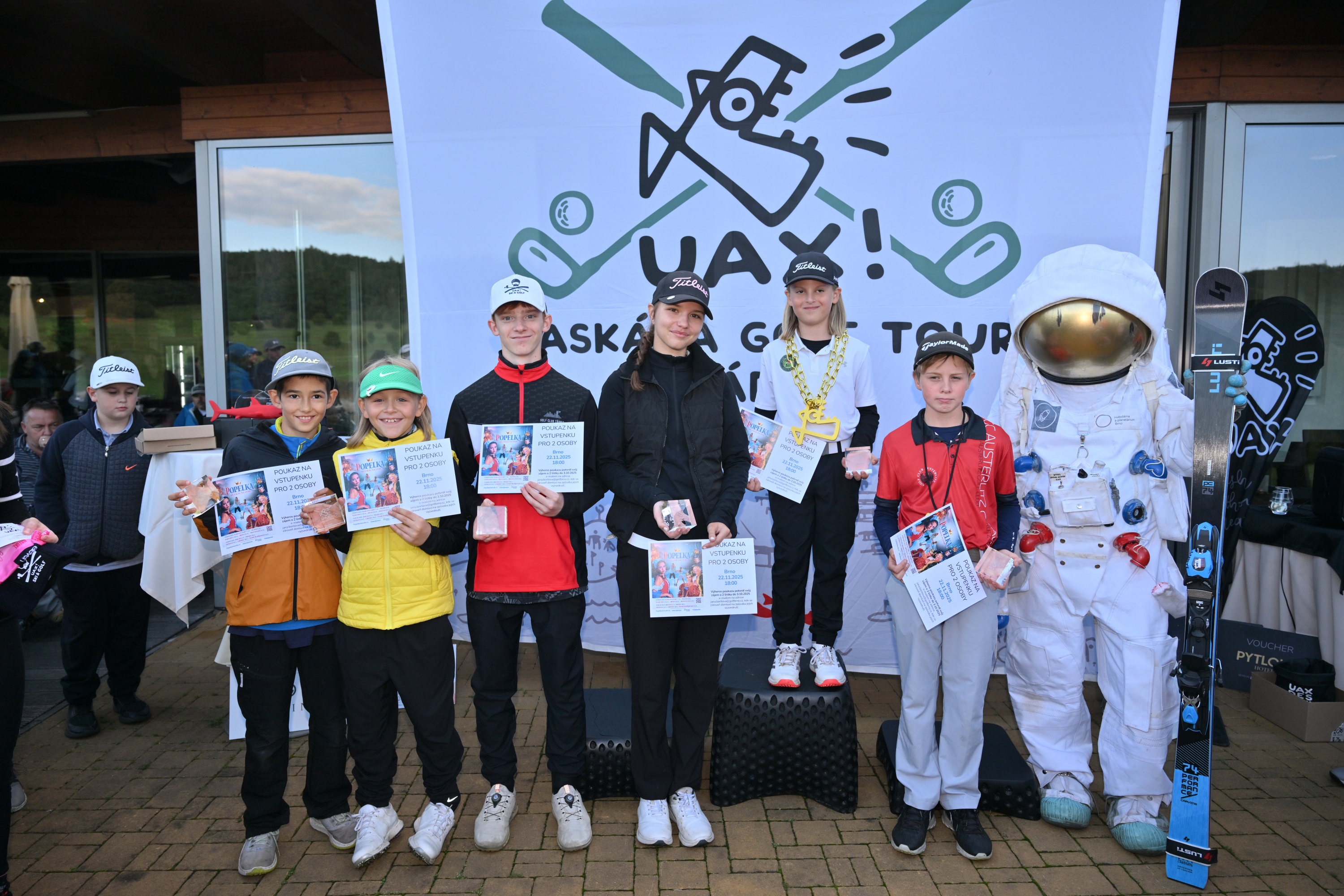 Závěrečné kolo UAX Golf Tour, které se konalo 27. září na golfovém hřišti Kaskáda v Brně, přineslo účastníkům nezapomenutelný zážitek plný překvapení a jedinečné atmosféry. Celý areál zdobila impozantní instalace planety Země, jež vytvořila působivou vesmírnou kulisu pro finálový turnaj. Organizátoři však pro mladé golfisty a jejich rodiny připravili ještě jedno nečekané překvapení – na hřiště přistál kosmonaut, který po celou dobu turnaje doprovázel účastníky na hřišti. Děti byly z jeho přítomnosti nadšené, s radostí se s ním fotogralovaly a objímaly ho. Kosmický návštěvník s sebou přivezl také hlavní cenu – nejnovější iPhone 16, o který se následně losovalo mezi všemi účastníky. Do slosování se mohl zapojit každý junior, který během sezóny absolvoval minimálně šest turnajů včetně finále. Tato prestižní cena přitáhla velkou pozornost a společně s dalšími hodnotnými cenami vytvořila atmosféru plnou napětí a očekávání.