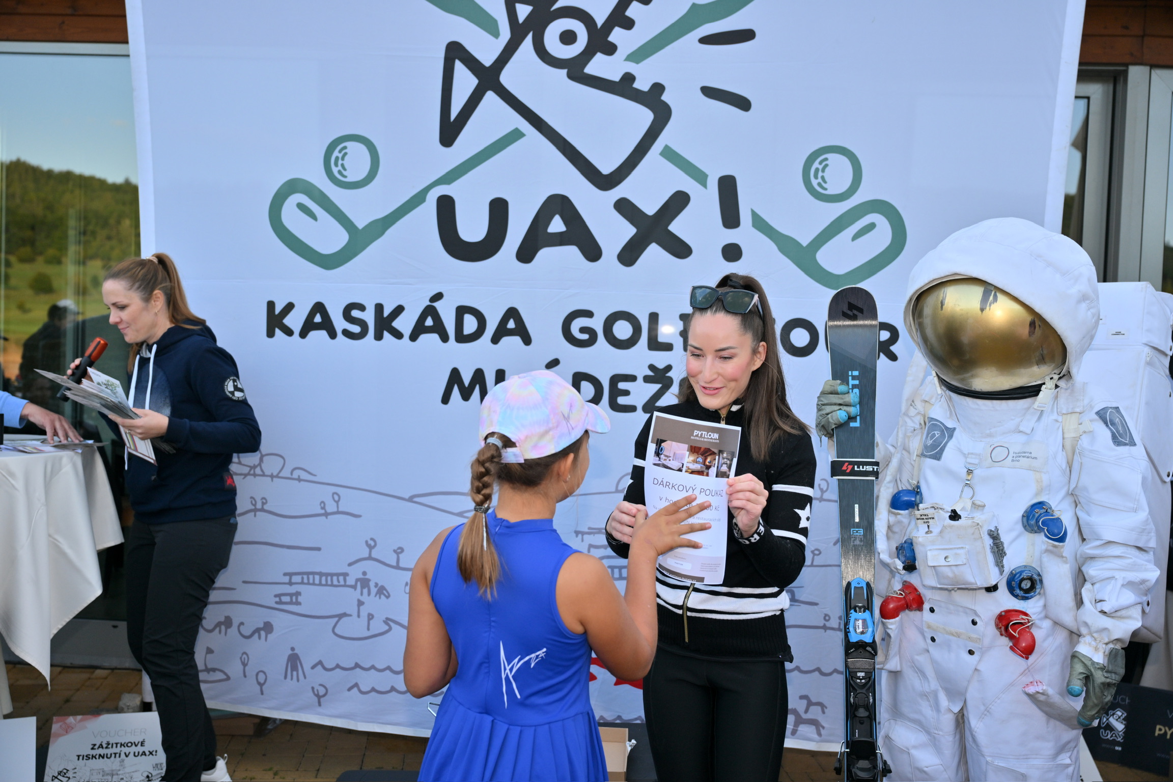 Závěrečné kolo UAX Golf Tour, které se konalo 27. září na golfovém hřišti Kaskáda v Brně, přineslo účastníkům nezapomenutelný zážitek plný překvapení a jedinečné atmosféry. Celý areál zdobila impozantní instalace planety Země, jež vytvořila působivou vesmírnou kulisu pro finálový turnaj. Organizátoři však pro mladé golfisty a jejich rodiny připravili ještě jedno nečekané překvapení – na hřiště přistál kosmonaut, který po celou dobu turnaje doprovázel účastníky na hřišti. Děti byly z jeho přítomnosti nadšené, s radostí se s ním fotogralovaly a objímaly ho. Kosmický návštěvník s sebou přivezl také hlavní cenu – nejnovější iPhone 16, o který se následně losovalo mezi všemi účastníky. Do slosování se mohl zapojit každý junior, který během sezóny absolvoval minimálně šest turnajů včetně finále. Tato prestižní cena přitáhla velkou pozornost a společně s dalšími hodnotnými cenami vytvořila atmosféru plnou napětí a očekávání.