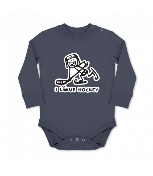 Vyrábíme udržitelné oblečení UAX! - ručně šité v Česku uaxDěti uaxLyžařská kolekceBodýčkaDĚTSKÉ BODY LONGpotisk 1100 - I LOVE HOCKEYGRAY INK