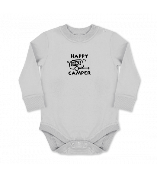 Dětské body dlouhý rukáv Lyžařská kolekce pro děti s potiskem 1116 HAPPY CAMPER v barvě CEMENT
