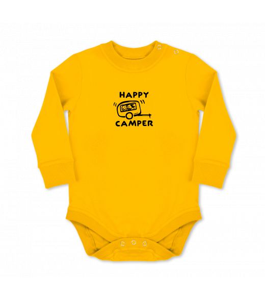 Dětské body dlouhý rukáv Lyžařská kolekce pro děti s potiskem 1116 HAPPY CAMPER v barvě GOLDEN CREAM