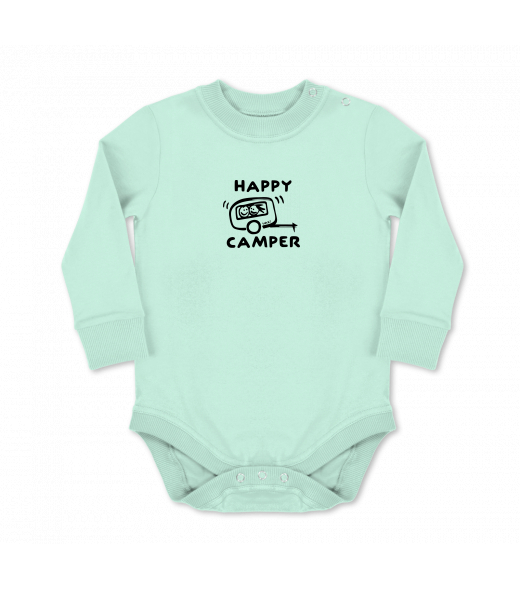 Dětské body dlouhý rukáv Lyžařská kolekce pro děti s potiskem 1116 HAPPY CAMPER v barvě MINT