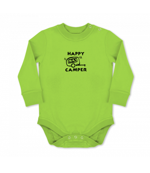 Dětské body dlouhý rukáv Lyžařská kolekce pro děti s potiskem 1116 HAPPY CAMPER v barvě PARROT GREEN