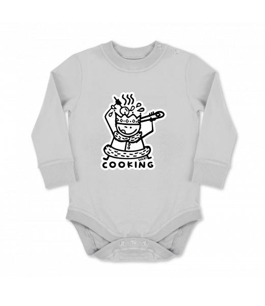 Dětské body dlouhý rukáv Lyžařská kolekce pro děti s potiskem 1117 COOKING v barvě CEMENT