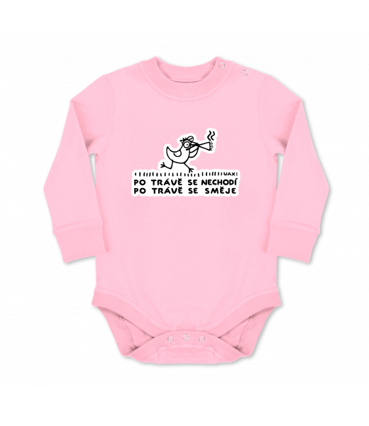 Vyrábíme udržitelné oblečení UAX! - ručně šité v Česku uaxDěti uaxLyžařská kolekceBodýčkaDĚTSKÉ BODY LONGpotisk 1118 - PO TRÁVĚ SE SMĚJEBABY PINK