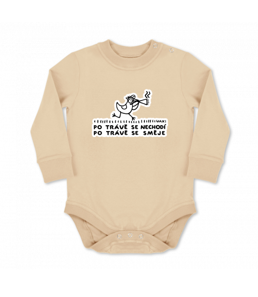 Vyrábíme udržitelné oblečení UAX! - ručně šité v Česku uaxDěti uaxLyžařská kolekceBodýčkaDĚTSKÉ BODY LONGpotisk 1118 - PO TRÁVĚ SE SMĚJECARAMEL
