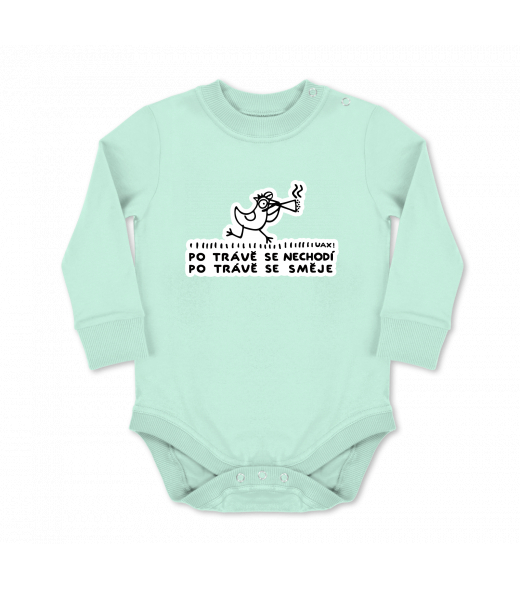 Vyrábíme udržitelné oblečení UAX! - ručně šité v Česku uaxDěti uaxLyžařská kolekceBodýčkaDĚTSKÉ BODY LONGpotisk 1118 - PO TRÁVĚ SE SMĚJEMINT