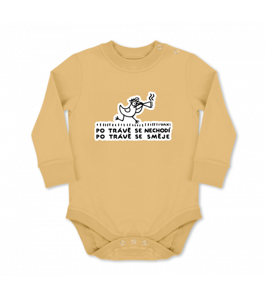 Vyrábíme udržitelné oblečení UAX! - ručně šité v Česku uaxDěti uaxLyžařská kolekceBodýčkaDĚTSKÉ BODY LONGpotisk 1118 - PO TRÁVĚ SE SMĚJEMUSTARD