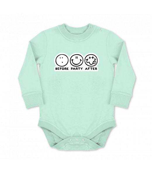 Dětské body dlouhý rukáv Lyžařská kolekce pro děti s potiskem 1120 BEFORE PARTY AFTER v barvě MINT