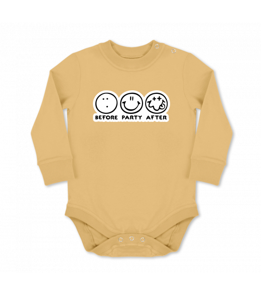 Vyrábíme udržitelné oblečení UAX! - ručně šité v Česku uaxDěti uaxLyžařská kolekceBodýčkaDĚTSKÉ BODY LONGpotisk 1120 - BEFORE PARTY AFTERMUSTARD
