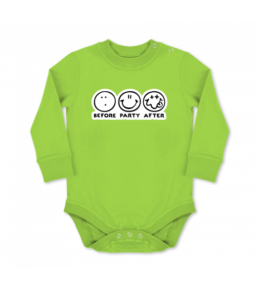 Vyrábíme udržitelné oblečení UAX! - ručně šité v Česku uaxDěti uaxLyžařská kolekceBodýčkaDĚTSKÉ BODY LONGpotisk 1120 - BEFORE PARTY AFTERPARROT GREEN