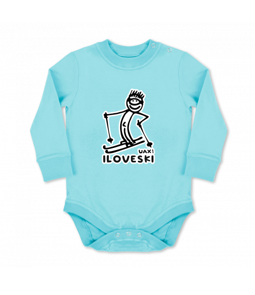 Vyrábíme udržitelné oblečení UAX! - ručně šité v Česku uaxDěti uaxLyžařská kolekceBodýčkaDĚTSKÉ BODY LONGpotisk 1122 - I LOVE SKIPASTEL BLUE