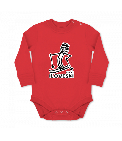 Dětské body dlouhý rukáv Lyžařská kolekce pro děti s potiskem 1122 I LOVE SKI v barvě RED