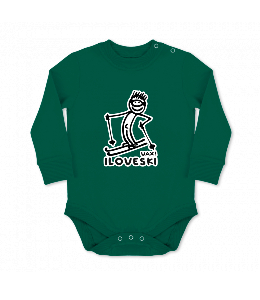 Vyrábíme udržitelné oblečení UAX! - ručně šité v Česku uaxDěti uaxLyžařská kolekceBodýčkaDĚTSKÉ BODY LONGpotisk 1122 - I LOVE SKIUNIVERSITY GREEN
