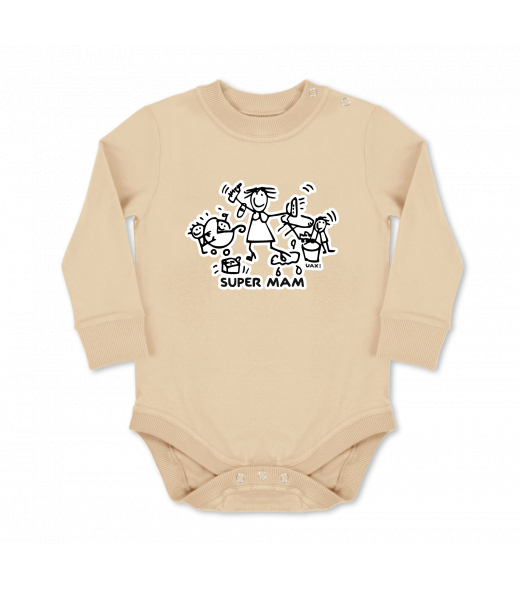Dětské body dlouhý rukáv Lyžařská kolekce pro děti s potiskem 1126 SUPER MAM v barvě CARAMEL