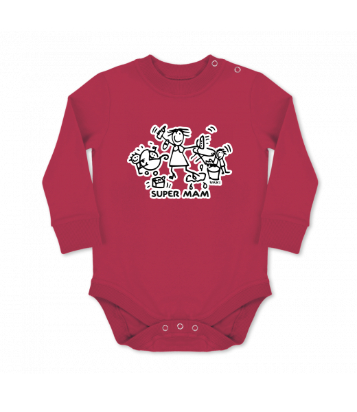 Dětské body dlouhý rukáv Lyžařská kolekce pro děti s potiskem 1126 SUPER MAM v barvě CHILLY PEPPER RED