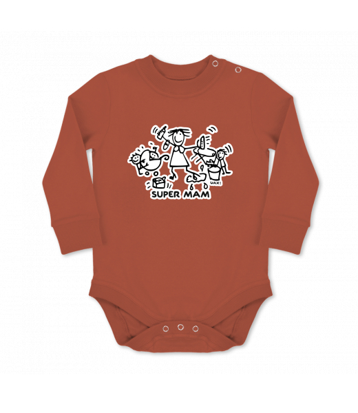Dětské body dlouhý rukáv Lyžařská kolekce pro děti s potiskem 1126 SUPER MAM v barvě TERRA