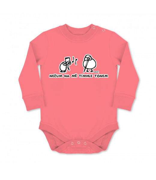 Dětské body dlouhý rukáv Lyžařská kolekce pro děti s potiskem 1134 NEČUM TÍMHLE TÓNEM v barvě LOSOSOVA