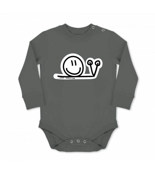 Vyrábíme udržitelné oblečení UAX! - ručně šité v Česku uaxDěti uaxLyžařská kolekceBodýčkaDĚTSKÉ BODY LONGpotisk 420 - KEEP SNAILDARK GRAY