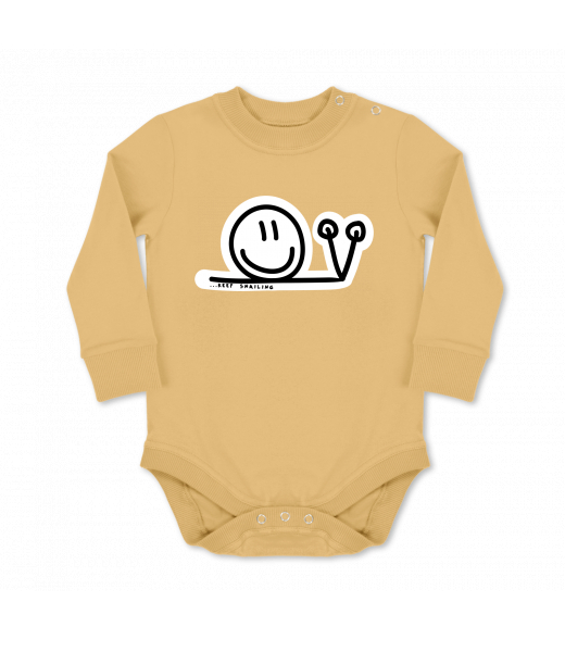 Vyrábíme udržitelné oblečení UAX! - ručně šité v Česku uaxDěti uaxLyžařská kolekceBodýčkaDĚTSKÉ BODY LONGpotisk 420 - KEEP SNAILMUSTARD