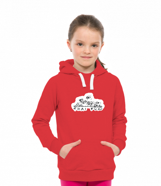 Dětská mikina LIGHT přes hlavu s kapucí a potiskem Lyžařská kolekce pro děti s potiskem 1041 THAI FUN v barvě RED