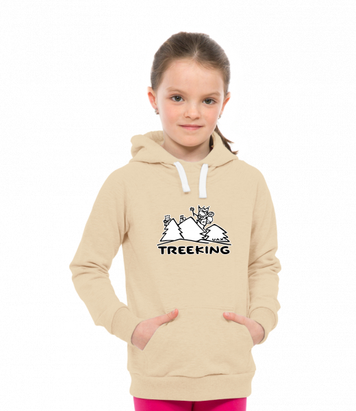 Dětská mikina LIGHT přes hlavu s kapucí a potiskem Lyžařská kolekce pro děti s potiskem 1044 TREKING v barvě CARAMEL