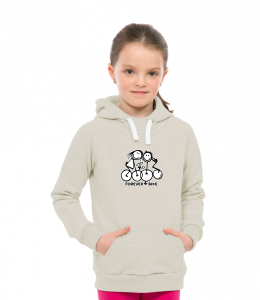 Dětská mikina LIGHT přes hlavu s kapucí a potiskem Lyžařská kolekce pro děti s potiskem 1068 FOREVER BIKE v barvě IVORY