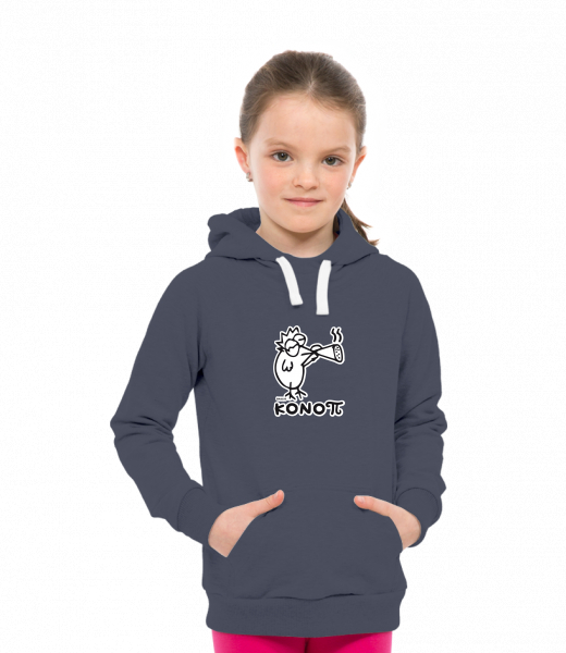 Dětská mikina LIGHT přes hlavu s kapucí a potiskem Lyžařská kolekce pro děti s potiskem 1094 KONOPI v barvě GRAY INK