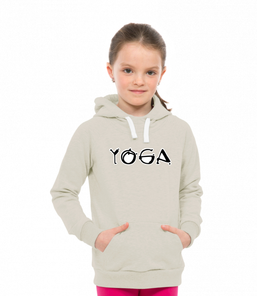 Dětská mikina LIGHT přes hlavu s kapucí a potiskem Lyžařská kolekce pro děti s potiskem 1115 YOGA v barvě IVORY