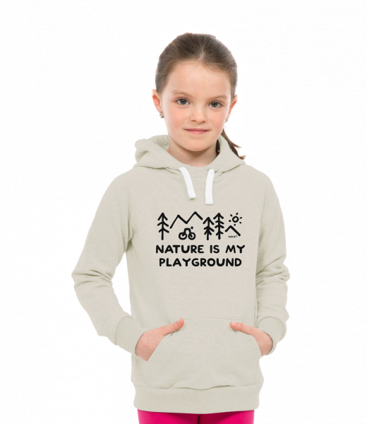 Dětská mikina LIGHT přes hlavu s kapucí a potiskem Lyžařská kolekce pro děti s potiskem 1223 NATURE IS MY PLAYGROUND v barvě IVORY