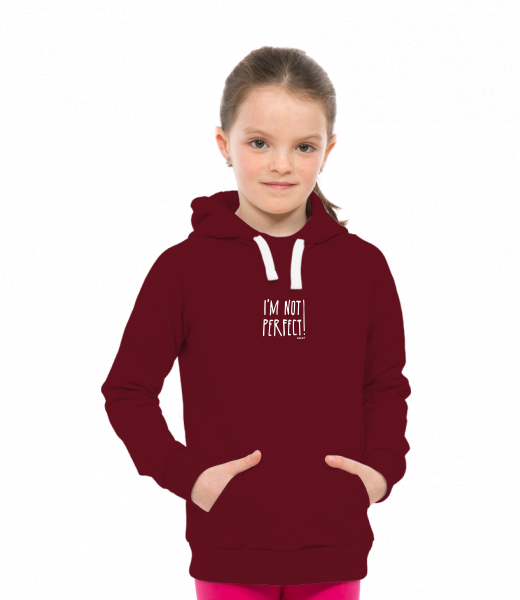 Dětská mikina LIGHT přes hlavu s kapucí a potiskem Lyžařská kolekce pro děti s potiskem 1230 IM NOT PERFECT v barvě DARK RED