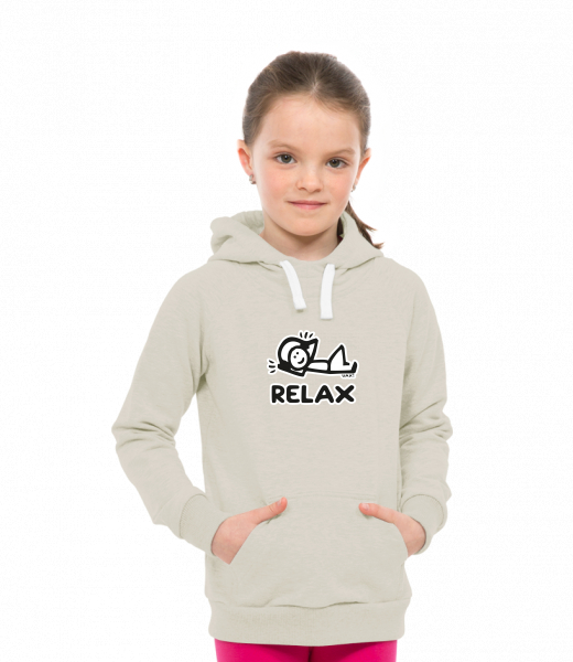 Dětská mikina LIGHT přes hlavu s kapucí a potiskem Lyžařská kolekce pro děti s potiskem 1236 RELAX v barvě IVORY